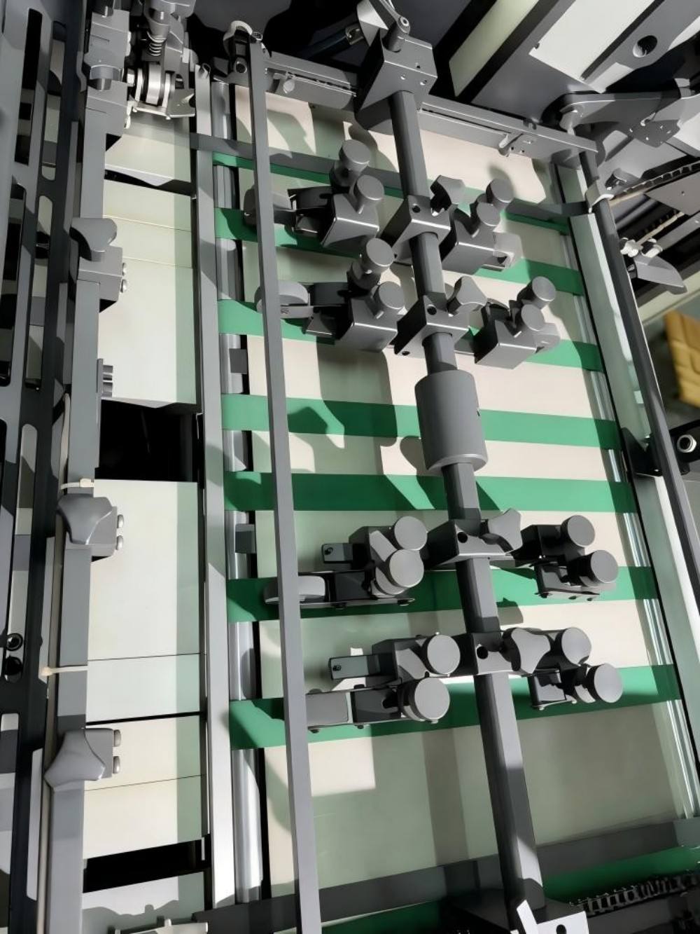 3) Механізми подачі паперу та перенесення паперу з поворотною рукояткою транспортують папір із точною реєстрацією, що гарантує високу якість друку зображень при високій швидкості роботи 12000 аркушів на годину, отже, високопродуктивну.