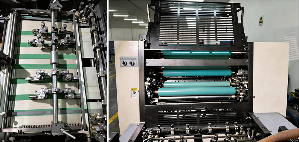 6) Механізми транспортування паперу, такі як головка подачі паперу, столик для паперу, передня напрямна та захвати паперу, гарантують, що прес може друкувати на широкому діапазоні паперів від щільного до тонкого паперу.